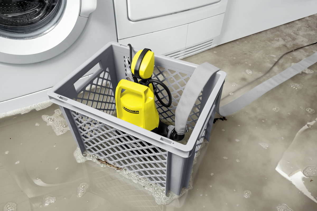 Kada kod prelivanja u kući i podrumu mora brzo da se postupa, idealno rešenje je Kärcher kofer sa uronjenom pumpom za ispumpavanje velikih količina vode. Kofer sadrži sve neophodno za brzu intervenciju. Sa izuzetno jakom pumpom za prljavu vodu SP 5 Dirt (br. 1.645-503.0) može da se istoči do 9500 litara na sat. Pri tome komadići prljavštine sadržani u vodi mogu da budu veliki do 20 milimetara. Kod velike prljavštine, kao što je to slučaj pri preplavljivanjima, kofer sa velikim rešetkastim otvorima može i sam da posluži kao dodatni predfilter – i da tako štiti radno kolo pumpe od začepljenja. Quick Connect priključni cijevni nastavak omogućava posebno brzo i jednostavno priključivanje platnenog crijeva 1 1/4" sadržanog u setu. Pošto spojnica za crijevo ima leptirasti zavrtanj, priključivanje se odvija čak bez alata. Crijevo dugačko 10 metara je idealno podesno za odvođenje velikih količina vode. Ono se namotava spljošteno i na taj način se da smestiti u koferu naročito štedeći prostor. Maksimalan radni pritisak iznosi 5 bara.