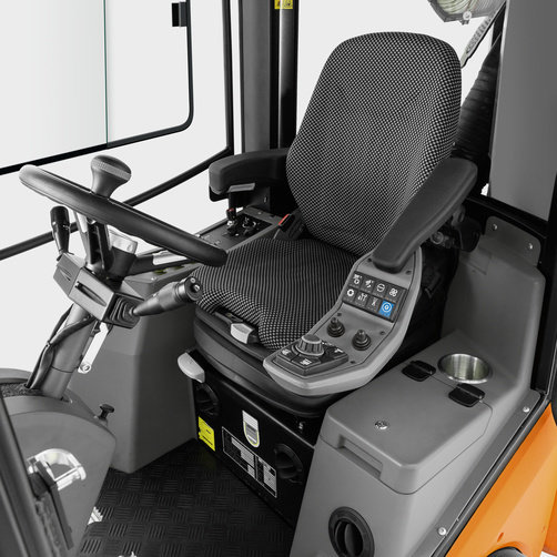 Najveća kabina u svojoj klasi (volumen vazduha od 1,45 m³), svestrana vidljivost 360 °, ergonomsko i jasno vidljivo. Obostrani prozori, pretinac koji se može zaključati, opcija punjenja preko USB-a, držač za flaše.