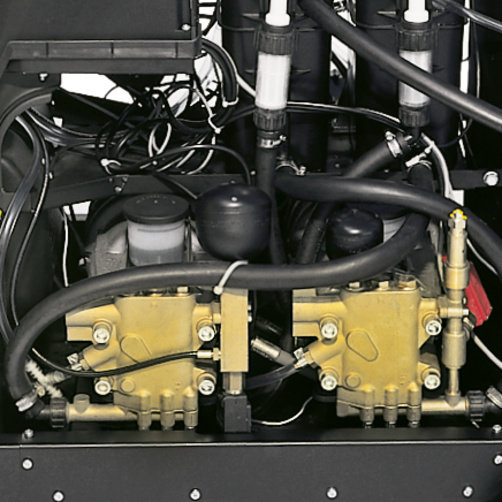 Kompresorski čistač sa grejačem HDS 2000 Super projektovan je za veliki površinski učinak i uklanjanje najtežih nečistoća. Dva četvoropolna elektromotora pokreću dvije troklipne aksijalne pumpe koje stvaraju protok vode od 1800 l/h pri pritisku od 180 bari. Velika snaga uređaja HDS 2000 Super omogućava istovremeno korišćenje dva štapa za zalivanje. Uprkos svojoj izvanrednoj snazi HDS 2000 Super je prenosna mašina koja se lako premiješta zahvaljujući velikim točkovima i dva upravljačka valjka. Dvije pumpe visokog pritiska opremljene su keramičkim klipovima i mesinganom glavom cilindra. Dva integrisana fina vodena filtera štite pumpe od prljavštine u vodi. Kao posebno tehničko rešenje, kod ove mašine moguće je na pištolju isključivati u uključivati dodavanje rastvora hemikalija. Elektronski sistem snima sve važne radne parametre, prikazuje glavne uzročnike grešaka i upozorava kada je potreban servis. Provjerava se i pravilan smjer obrtanja elektromotora pa se, ako je to neophodno, može lako ispraviti preko standardnog izmjenjivača polariteta.