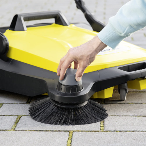 Bilo da je proljeće, ljeto, jesen ili zima – nova mašina za metenje S 6 od Kärchera pogodna je za cjelogodišnje čišćenje oko kuće i u bašti. Ona je izuzetno efikasna: Zahvaljujući svom snažnom valjku za metenje, bočnoj metlici i širini metenja od ukupno 670 milimetara, mete bez napora površine do 2500 m² na sat. Ručka za guranje može se jednostavno podesiti u 2 položaja, bez saginjanja, i može se optimalno prilagoditi prema telesnom rastu korisnika. Otpad sakuplja direktno u rezervoar zapremine 38 litara, a prilikom njegovog pražnjenja nema prljanja ruku. Dodatna prednost je podešavanje visine bočne metlice što omogućava prilagođavanje potisnog pritiska prema svakom otpadu – a time i optimalan rezultat metenja. S 6 se može kompletno sklopiti jednostavno pritiskom na gazište na ramu za odlaganje koje štedi prostor. Zahvaljujući postavljanju bočnih metlica bez alata, mašina za metenje je odmah spremna za rad.