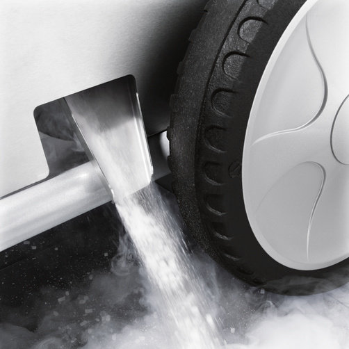 Ice Blaster IB 7/40 Classic, uređaj za čišćenje suvim ledom visokih performansi, naročito je pogodan za svakodnevnu upotrebu. Rukovanje i manevrisanje njime je udobno, a rad pouzdan. Sve komponente i tehnologije su naravno usklađene sa najvišim standardima kvaliteta. Na primJer, dobro osmišljena tehnologija za zatvaranje sprečava zaleđivanje mašine tokom raspršivanja, dok optimizovani protok vazduha garantuje odlične rezultate čišćenja pri srazmerno niskom pritisku i potrošnji vazduha, pri čemu je, u isto vrijeme, nivo buke relativno nizak. Pritisak mlaznog pištolja i količina izbačenog leda se mogu neprekidno regulisati pomoću tastera, ali se mogu i blokirati ključem. Ice Blaster, osim toga, ima integrisan separator za ulje i vodu, kao i sistem za uklanjanje viška leda posle završenog rada jednostavnim pritiskom na dugme. Uz to je, preko drugog tastera, moguće potpuno isključiti statističke vrednosti, kao što su operativno vreme, prosečna potrošnja leda po satu ili ukupan utrošak leda.