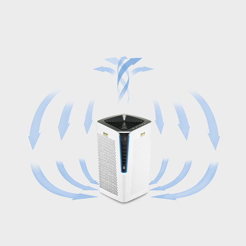 Prašina, polen, mirisi, hemijski gasovi: Kvalitet vazduha na mnogim radnim mjestima nije uvijek optimalan. Lijek je obezbijeđen od strane našeg profesionalnog prečišćivač vazduha AF 100. Moćnom motoru je potrebno samo nekoliko minuta da snadbijeva sobe do 100 m² sa svježim i čistim vazduhom. Uređaj je pokretan i lako se može pomicati zahvaljujući robusnim valjcima i preseliti u drugu prostoriju. U zavisnosti od primjene, imate mogućnost ugradnje prečišćivač vazduha sa različitim filter kasetama. Ili sa našim Allround-filterom, koji nudi veoma širok spektar efekata i tako pokriva sve zahtjeve. Ili izaberite jedan od 4 filtera specijalno dizajnirana za ciljanu eliminaciju bakterija, mirisa, alergena ili isparljivih organskih jedinjenja. Za kontinuirano praćenje vazduha u prostoriji i kontrolu automatskog režima, integrisan je precizan laserski senzor. Kvalitet vazduha se uvek prikazuje pomoću jasne kolor šeme, dok se trenutni sadržaj prašine u vazduhu i preostalo vrijeme rada filtera mogu očitati u bilo kom trenutku preko displeja.